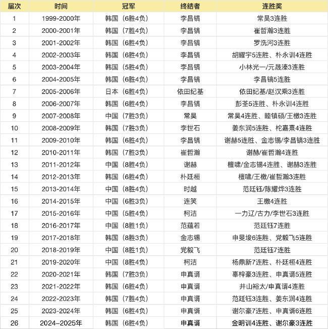赶走现在26届农心杯比赛,韩国队共夺得17次冠军,中国队夺得8次冠军,日本队夺得1次冠军。
