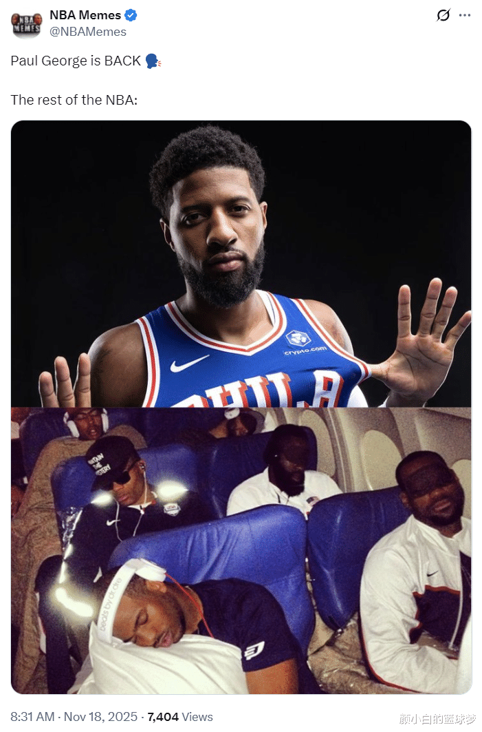 天然乔治复出了,但好意思媒NBA Memes照旧嘲讽他:乔治回想了,定约其他的球队王人在休眠。这诠释环球王人依然不合计乔治是一个球星。
