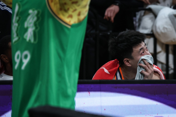 12月31日,赛前辽宁本钢队现场播放对于张镇麟和弗格的追念视频,张镇麟不雅看时落泪。新华社记者潘昱龙摄